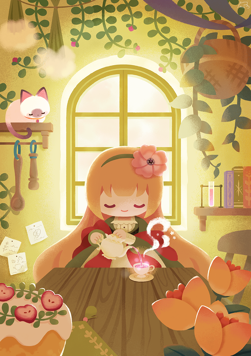 デザフェス60にて販売したグッズイラスト。 陽だまりの魔女とかぎしっぽのヨツバの穏やかな日常を描いています。